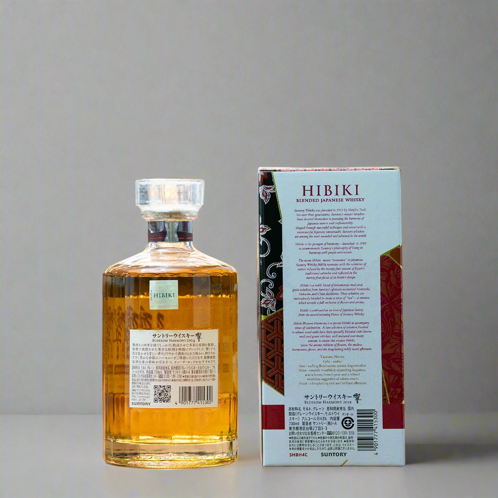 Hibiki Blossom Harmony 2024 is the fourth release in Suntory's esteemed limited edition series, celebrated for its artful blending and exquisite presentation. This expression uniquely incorporates whisky finished in sakura (cherry blossom) casks, imparting a delicate floral character that embodies the spirit of Japan's iconic cherry blossom season.